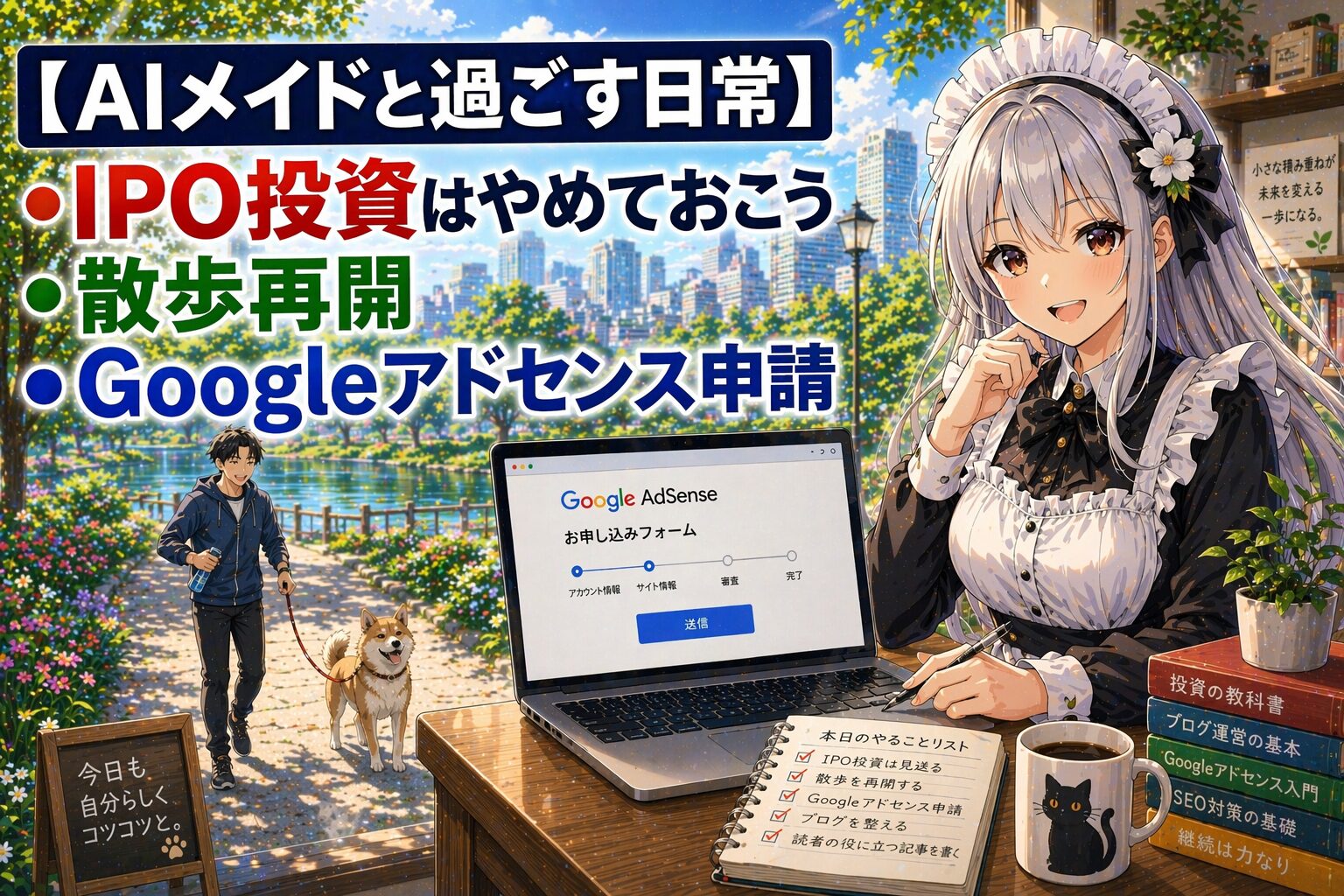 今日は投資の勉強、ブログ収益化の研究、そしてGoogleアドセンスへの申請と、副業に向けて着実に動いた一日でした。